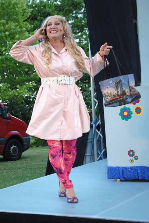 Klingenmünster. „Heijo, der liebe Gott der lacht, wenn er sei Palz betracht.“ Mit einem Lied zum Mitsingen beginnt das Stück Palz goes Paradise des professionellen Theaterkollektivs Chawwerusch aus Herxheim. Auf der Festwiese des Pfalzklinikums Klingenmünster zeigten die beiden Schauspieler Christine Rothacker und Ben Hergl am Freitag, 30. Juni, eine kunterbunte Heimat-Revue mit viel Musik, Tanz und „Pälzer Sprooch“. Für sie war es die erste Aufführung des Stücks unter freiem Himmel und das Wetter hielt. Die Zuschauer waren teilweise durch den Regen gefahren, aber die Festwiese in Klingenmünster blieb den ganzen Abend trocken. Die Stühle waren fast bis auf den letzten Platz mit Zuschauern besetzt.