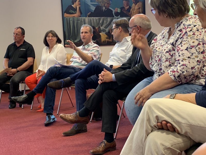 „Wichtig für die Zukunft ist die Bereitschaft der Bürgerinnen und Bürger, sich an den Prozessen aktiv zu beteiligen“, betonte der neue Stadtbürgermeister Michael Vettermann (3. v.l.) von Rockenhausen bei der offenen Diskussion.