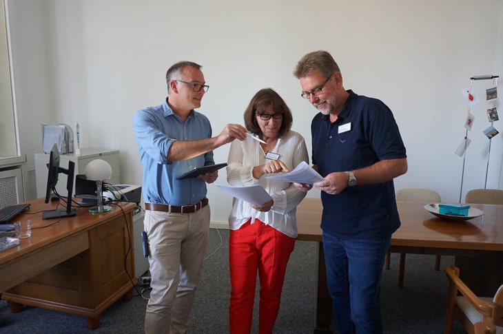 Prof. Dr. Brigitte Anderl-Doliwa (Mitte) und ihre Stellvertreter in der Pflegedirektion: Sven Kaufmann und Michael Hübner (v.l.n.r.).
