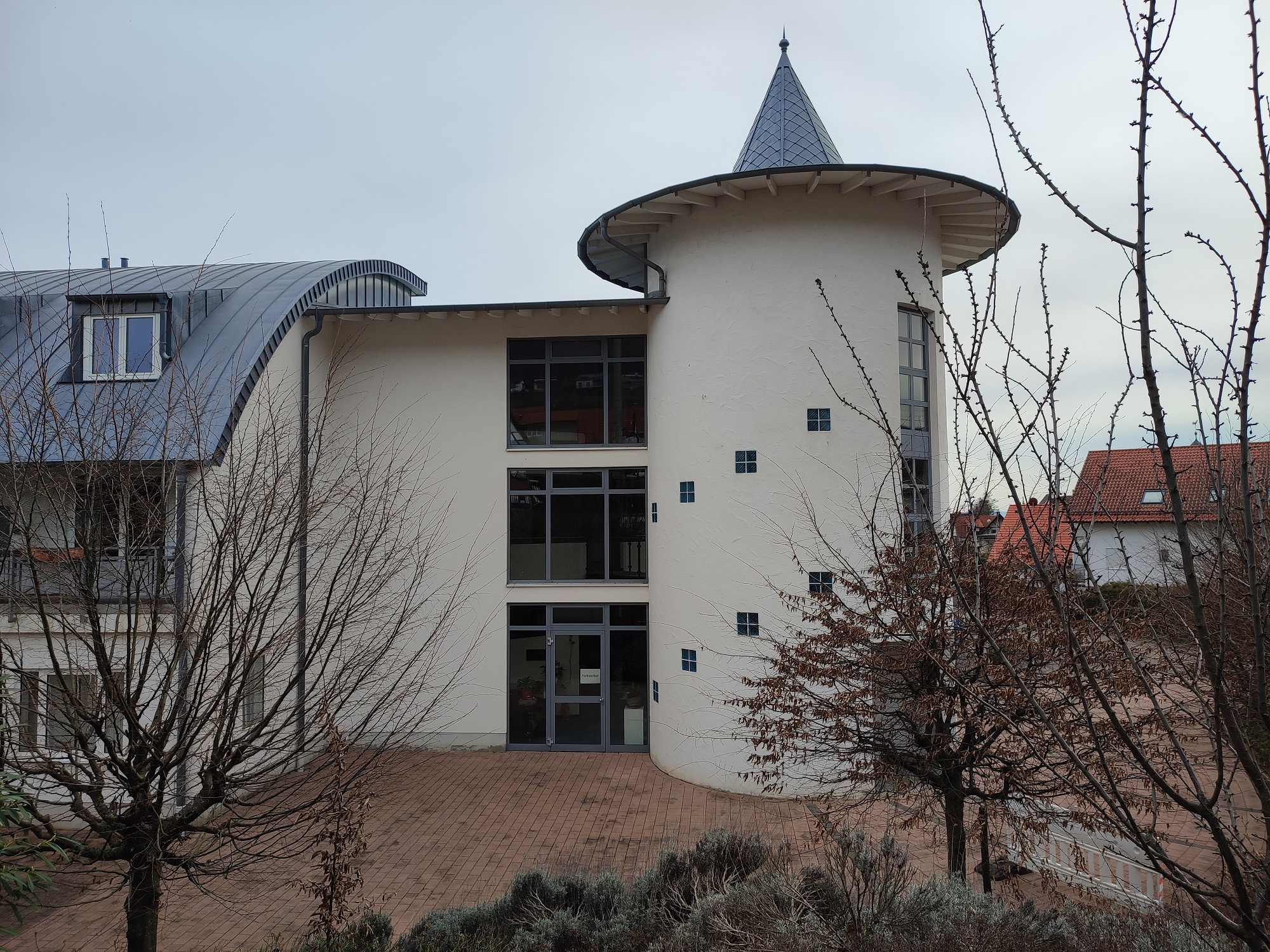 Der Eingang der neuen Schule für Ergotherapie in Gleiszellen. 07.03.2024 Zum zugehörigen Eintrag Download